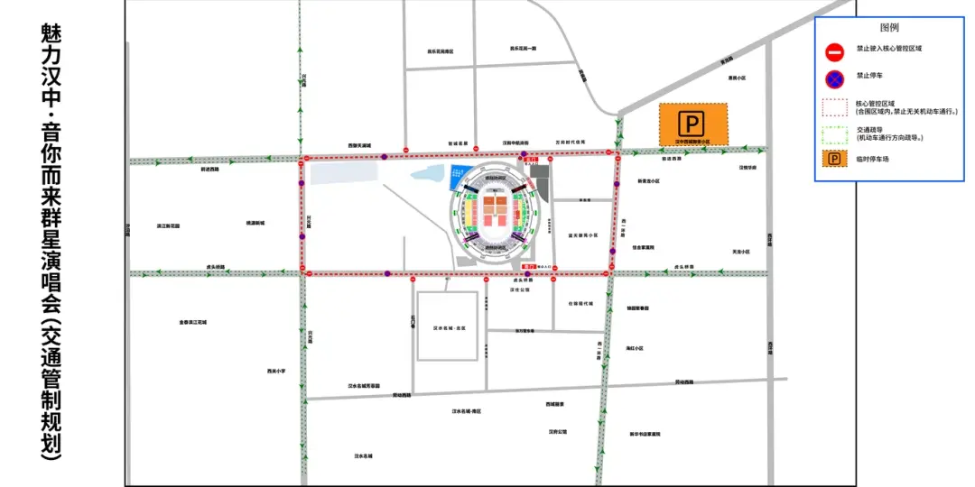 附件:“魅力汉中﹒音你而来”群星演唱会临时交通管制示意图