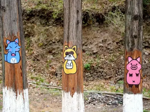 憨态可掬的熊猫、活灵活现的小羊……近日,在玉皇庙镇大树坝村最美乡村路一段,近百幅以卡通动物为主题的创意树绘成为村民、游客驻足打卡的靓丽风景。仔细观察会发现,这些图案在描绘时不仅没有破坏树木的生长形态,