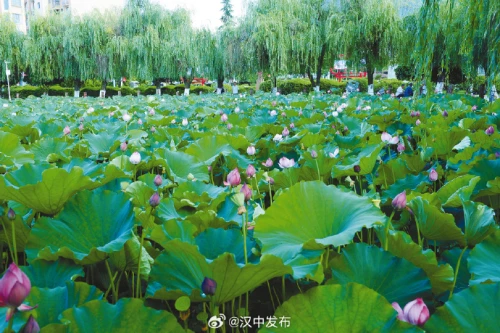 接天莲叶无穷碧,映日荷花别样红。仲夏时节,荷花争相绽放,汉中人的“朋友圈”再次被盛开的荷花刷屏。市中心城区天汉湿地公园汉水女神广场的荷花已悄然盛开,粉色荷花风姿绰约,绿色荷叶迎风摇摆,与汉水女神像相映