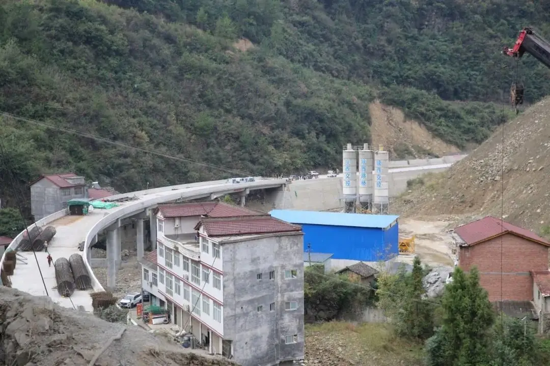 据工程项目部负责人介绍,该项目分为A、B两个标段,A标段为灾后改线重建路段,总长1.451公里,采用二级公路标准,路基宽度10米,设计时速60Km/h,该标段路基工程、防护工程基本完工,新建的桥梁除伸缩缝、桥头搭板等附属设施外已全部完工。B标段为两处灾害治理,外业已全面完工。剩余的主要工程为A标段路堑开挖、坡脚抗滑桩、上挡墙砌筑,路面沥青铺设、排水、交安和绿化等附属工程。