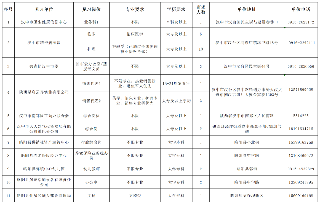 汉中市2024年就业见习公告(十二)一见习政策解读就业见习是指见习人员按照有关政策规定,在见习单位提供的见习岗位进行一定期限的实践锻炼,积累工作经验、提升就业能力的就业促进活动。见习人员的范围:离校2