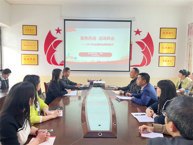 4月2日,春意盎然,汉台区教研室中教科科长郭荣一行来到舒家营初级中学,为老师们带来了一场生动而深刻的2024全国两会精神宣讲。本次宣讲活动旨在帮助老师们更好地理解和把握全国两会精神,以实际行动践行社会主义核心价值观,推动学校教育教学工作再上新台阶。
