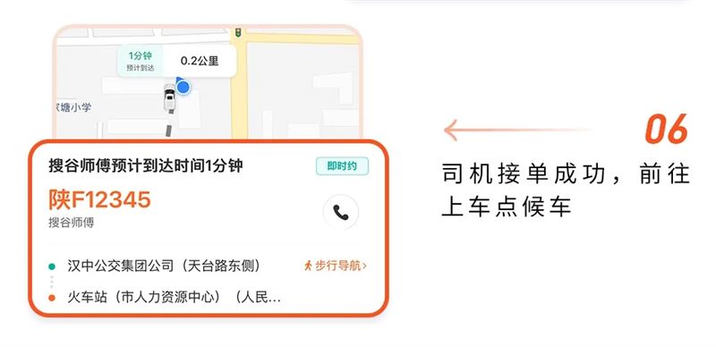 接单成功后,小程序会显示车辆信息和预计到达时间,让你的等候不再慢长~