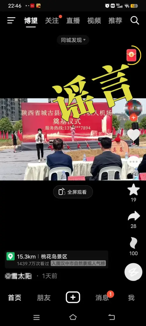 近日,城固县公安局网安大队民警在工作中发现柳林镇一网民在社交媒体视频平台发布一条施工视频并配有“私人机场奠基仪式”的文字。视频发布后在网上迅速传播引发网民的关注讨论。经民警核实,这则视频为不实信息。根