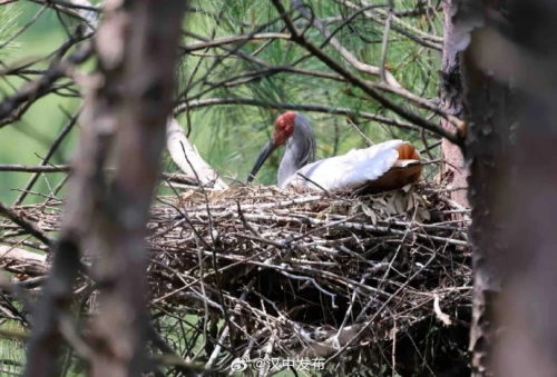 4月以来,一对朱鹮在地处汉江源头的宁强县高寨子街道何家院村的松树林内筑巢繁殖。随着宁强汉水源国家湿地公园生态环境的改善,2019年首次在宁强县大安镇发现野生朱鹮后,近年来陆续又在汉源、高寨子等镇(街道
