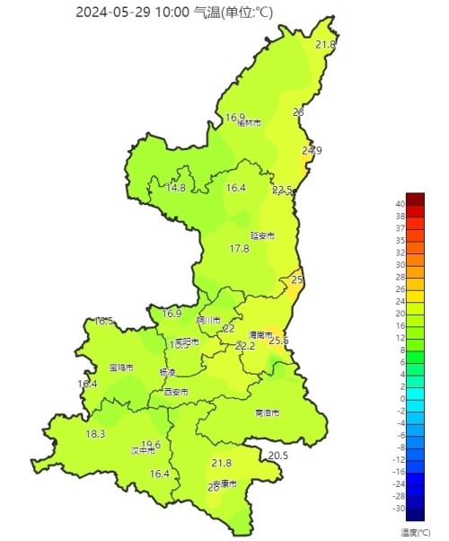 在降雨和冷空气的合作下,5月29日汉中的气温达到了近期最凉爽,部分地区已经是有点冷了,上午10时,陕西省大部气温都在20℃左右或以下,宝鸡、汉中部分区县仅有15℃,你穿短袖还是加了件外套?陕西省气象台