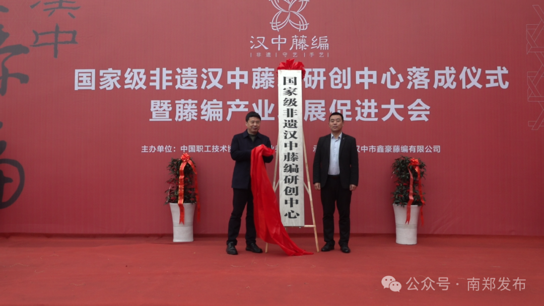2月19日,国家级非遗汉中藤编研创中心落成仪式暨藤编产业发展促进大会在黄官镇举行。区政协党组副书记刘刚,陕西理工大学团委书记王甫明为研创中心揭牌。区人大常委会副主任何祥滨、副区长卿彦宏等出席。藤编产业