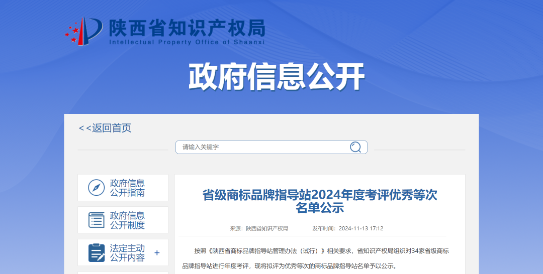 近日,陕西省知识产权局发布《省级商标品牌指导站2024年度考评优秀等次名单公示》。汉中1个指导站入选详细名单如下
