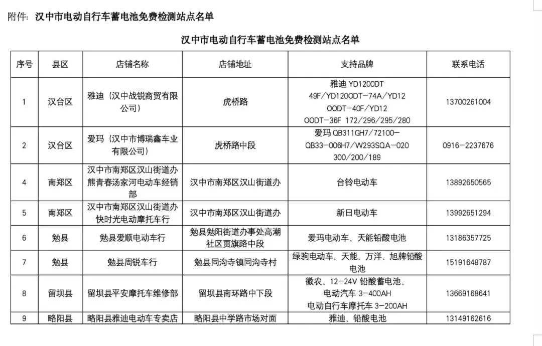 电动自行车蓄电池使用年限较长后,发生故障引发火灾的风险将加大,为降低电动自行车火灾风险,全市各县区依托电动自行车销售门店,建立了18个电动车蓄电池安全检测服务站点,各地群众可到就近检测服务点,免费检测