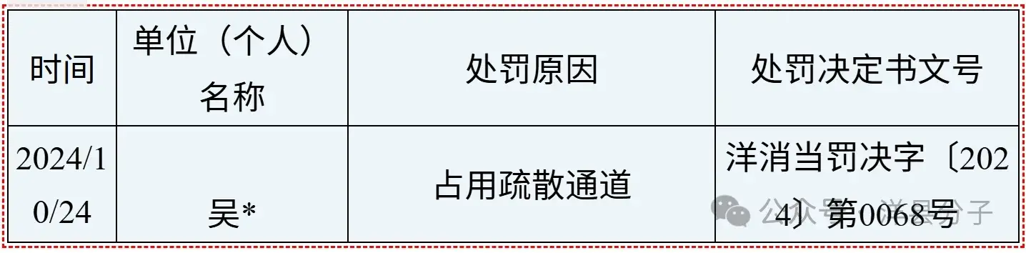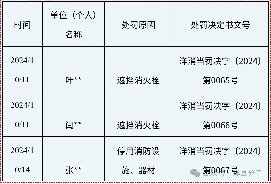 近日,洋县消防救援大队公示了2024年10月行政处罚情况。洋县消防救援大队2024年10月行政处罚情况公示(一)为了广大市民能够及时了解消防行政处罚情况,现将2024年10月份我大队办理的消防行政处罚