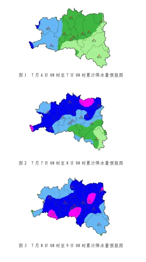汉中市气象台2024年7月6日12时发布重要天气报告受西风槽东移和副高外围暖湿气流共同影响,预计7月7-11日汉中市进入多雨时段,降水持续时间长,影响范围广,累计雨量大,局部雨强强,期间伴有雷暴、短时