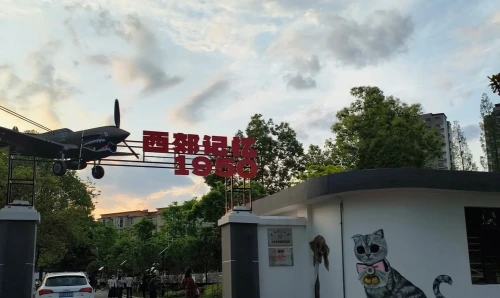 走进西郊记忆文化科技创意产业孵化园,以飞机模型为特色元素的门头映入眼帘,一排排老旧的红砖瓦房排列整齐,步道间花香树茂、错落有致,墙面上独属于汉中记忆的老照片让不少年轻人在此拍照打卡,历史韵味与现代艺术