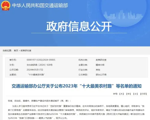 近日,交通运输部发布《关于公布2023年“十大最美农村路”等名单的通知》,经过各省级交通运输主管部门审核推荐、网民自发评议、组织专家终评,确定了陕西省渭南市富平县金栗山至张桥镇(美原镇至杨尧段)等10