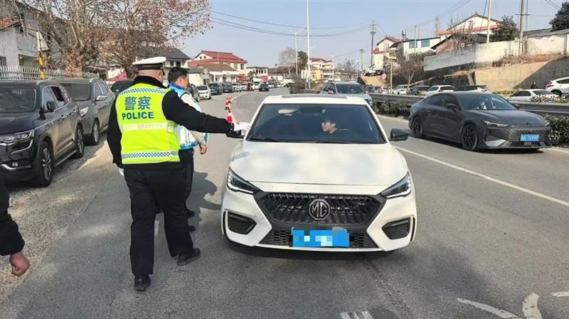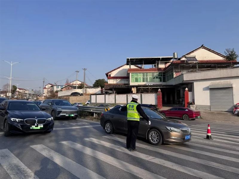 “师傅,请往这边开,在前面有序停放。”“电动车请靠右行驶,注意安全。”执勤民警及时分流拥堵车流,对违停车辆进行劝离,在关键节点采取交替放行措施,全力缓解道路通行压力,耐心引导每一辆车规范停放、有序通行。