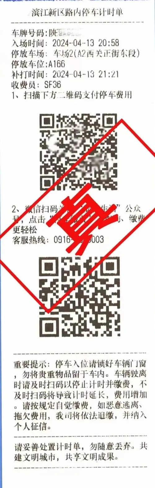 近日,有群众反映称其爱车上被粘贴有《汉中市街道占道停车收费管理》等内容的缴费提示单。注意!注意!注意!这张停车缴费小程序、二维码是假的!切勿扫码支付,要注意甄别。通过仔细对比,这张假的停车收费管理单明